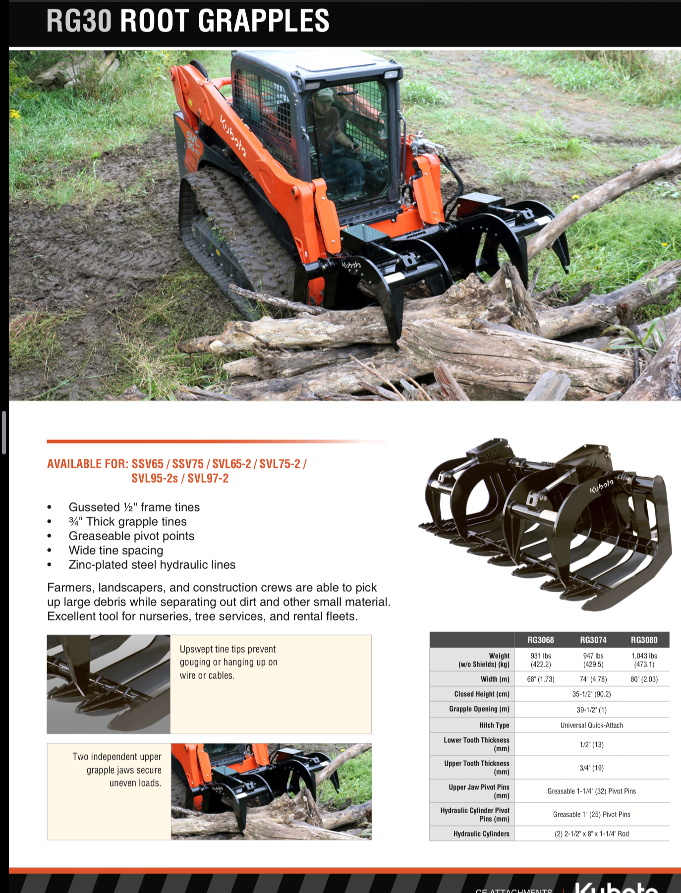 Make quick work of large jobs, and can be used to rake, dig, and move rocks, trees, brush, and construction debris without picking up dirt. Farmers, landscapers, and construction crews are able to pick up large debris while separating out dirt and other small material. Excellent tool for nurseries and tree services.